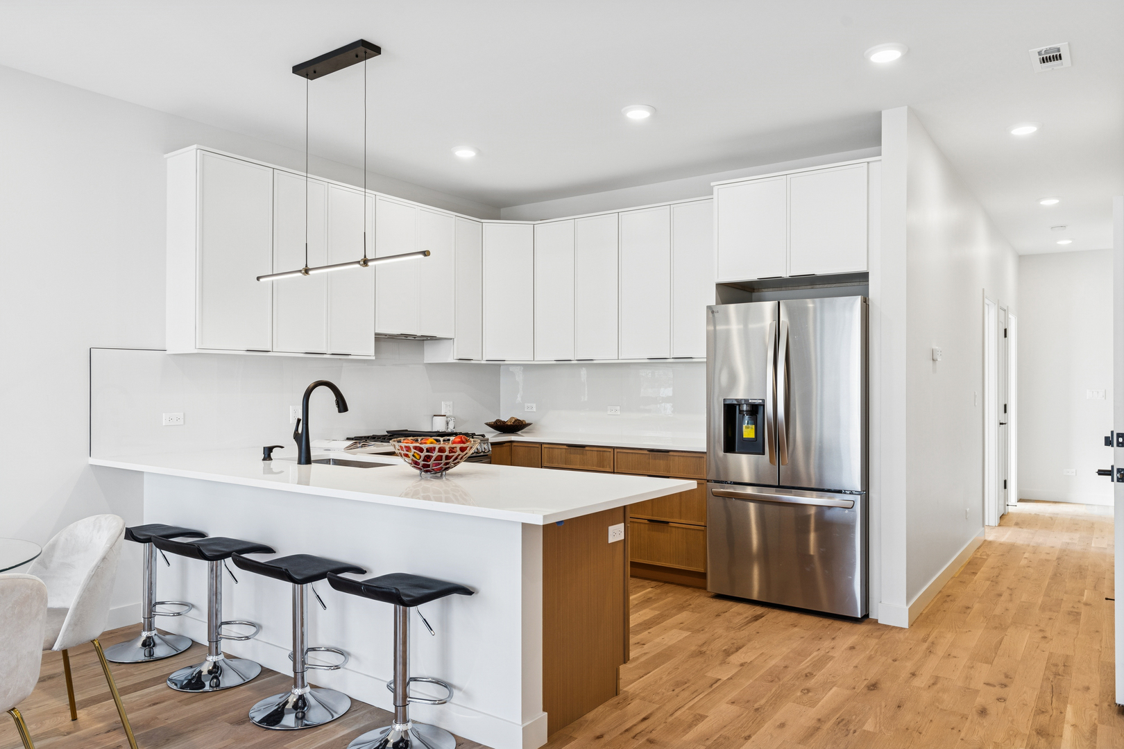 Three Exceptional Residences in a striking full-masonry, intimate three-unit building blending contemporary design with the stately rhythm of Bronzeville's historic streetscape. The architecture is modern yet timeless, pairing clean lines with generous scale and spaces designed for real life-easy entertaining, comfortable everyday living, and flexibility to suit your lifestyle. Each extra-long homes maximize livable square footage and flow, creating homes that feel open, refined, and highly functional. Finishes are fresh, modern, and of exceptional quality, delivering an elevated living experience without sacrificing comfort or practicality. Signature features include full masonry construction, white oak flooring, large-format porcelain tile, minimal-step showers with ribbon drains, expansive kitchen peninsula ideal for gathering, network distribution closet for modern connectivity, thoughtful layouts with flexibility for living, working, and entertaining, and generous roof deck access. Perfectly positioned in the heart of historic Bronzeville, these residences offer unmatched convenience. The Green Line and CTA bus service are less than a block away, with neighborhood favorites such as Simply Soups, Salads & Sandwiches, and Two Fish Crab Shack, as well as local coffee spots, art galleries, shopping, and Washington Park nearby. Enjoy quick access to the Lakefront, South Loop, and Hyde Park-just minutes by bike or car. Fusion Homes is known for delivering exceptional quality and lasting value, and this offering is no exception-providing space, style, and craftsmanship that stand out in today's market. Ideal for those seeking modern living in a vibrant, transit-rich neighborhood.